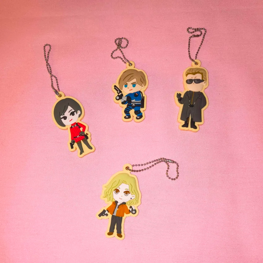 Dutch got us these adorable keychains... they have a squeaker inside them which is so funny and cute. dutch got me the leon and carlos and got wesker, ada, and leon for himself. I'm always so excited to see cute carlos merch and omg look at him...